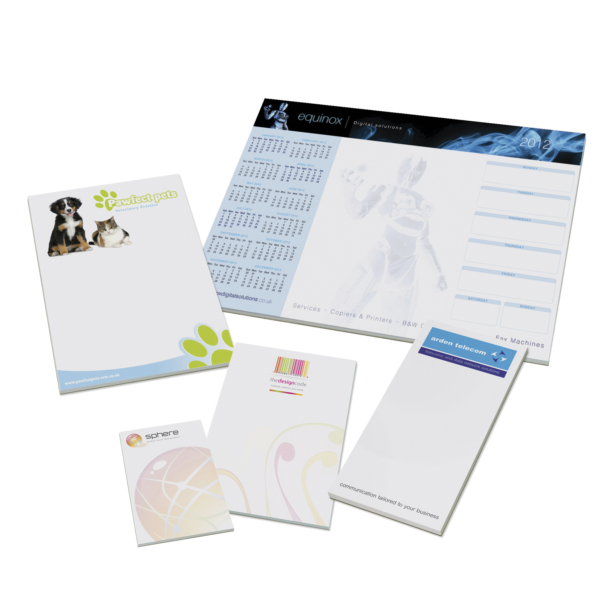 50 sheets of white paper from a sustainable source on a board backing, UK Made in a Carbon Zero factory. Available in A2/A3/A4/A5/1/3rd A4/A6/A7. Pricing is for A5 size, printed 1 colour to each sheet.